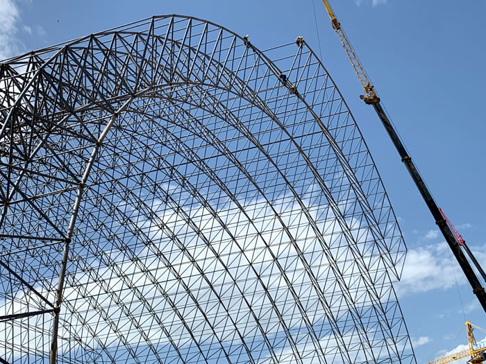 (2)网架加工前应对现场尺寸进行复测,确认无误后方可进行加工、安装;网架制作、运输、安装应遵守《空间网格结构技术规程》JGJ7-2010、《钢网架利川螺栓球节点》JG/T 10-2009、《钢网架利川螺栓球节点用高强度螺栓》 GB/T 16939-2016、《利川钢结构利川工程利川施工规范》 GB50755-2012、《利川钢结构利川工程施工质量验收标准》 GB50205-2020。